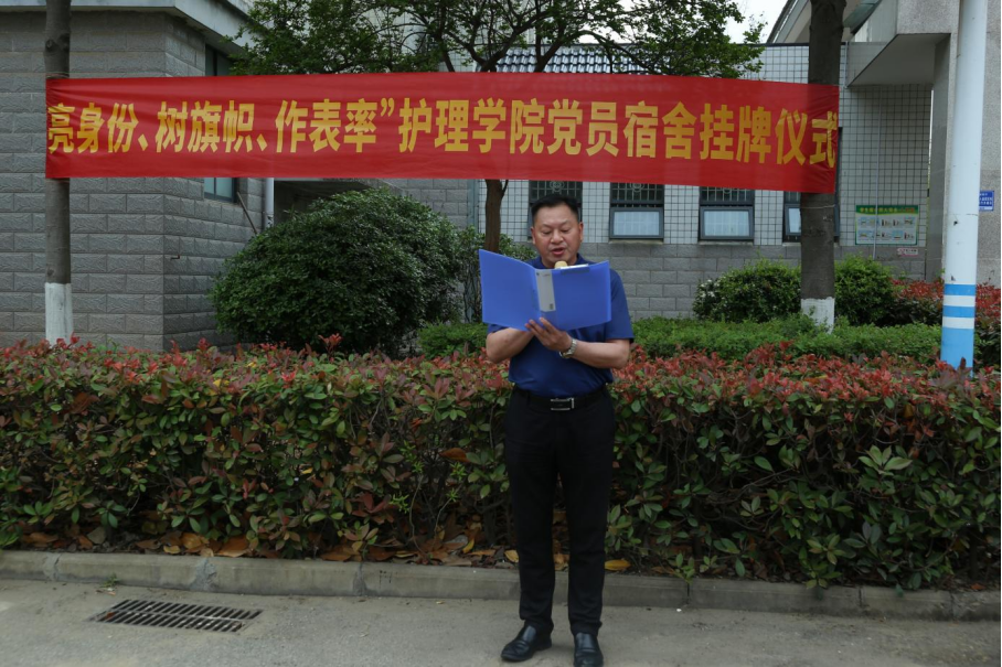 为深入学习贯彻党的二十大精神,扎实推进学生党员先进性示范工程,发挥党员先锋模范作用,进一步增强学生党员的责任感、使命感,营造“讲政治、讲文明、讲学习、讲卫生”的良好宿舍氛围,太阳成集团tyc33455cc于2023年4月18日在东三东四宿舍楼前举行了“亮身份、树旗帜、作表率”主题党日暨党员宿舍挂牌启动仪式。