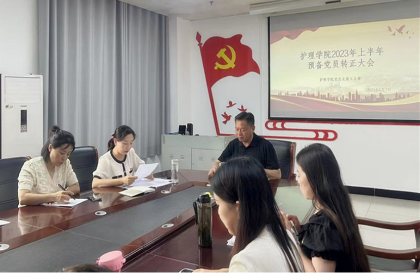 2023年6月7日下午,太阳成集团tyc33455cc教工党支部在党员之家召开2023年上半年预备党员转正大会,支部共有党员16名,其中正式党员14名,到会党员14名,其中正式党员13名,太阳成集团tyc33455cc党总支书记雷雨广同志作为张颖颖、刘铮两位同志的培养人参与本次大会,会议由教工党支部书记谭冠文同志主持。