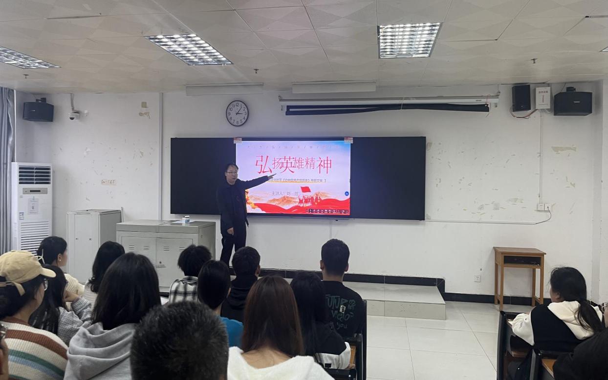 刘斌老师首先向我们介绍了什么是英雄精神,正如鲁迅先生说:“我们自古以来,就有埋头苦干的人,有拼命硬干的人,有为民请命的人,有舍身求法的人……这就是中国的脊梁。”其次讲述了弘扬英雄精神的意义,最后,讲述了如何弘扬、学习和传承英雄精神。中华民族是英雄辈出的民族,新时代是成就英雄的时代。崇尚英雄才会产生英雄,争做英雄才能英雄辈出,关爱英雄才能让更多人记住英雄。大力弘扬英雄精神,需要每一个人的参与,需要每一名青年学子践行传承。需要坚定信仰,尊重英雄,铭记英雄,读懂我们国家民族的过去、现在和未来,要从英雄身上汲取奋发的力量,共同推进社会主义伟大事业,实现中华民族伟大复兴。