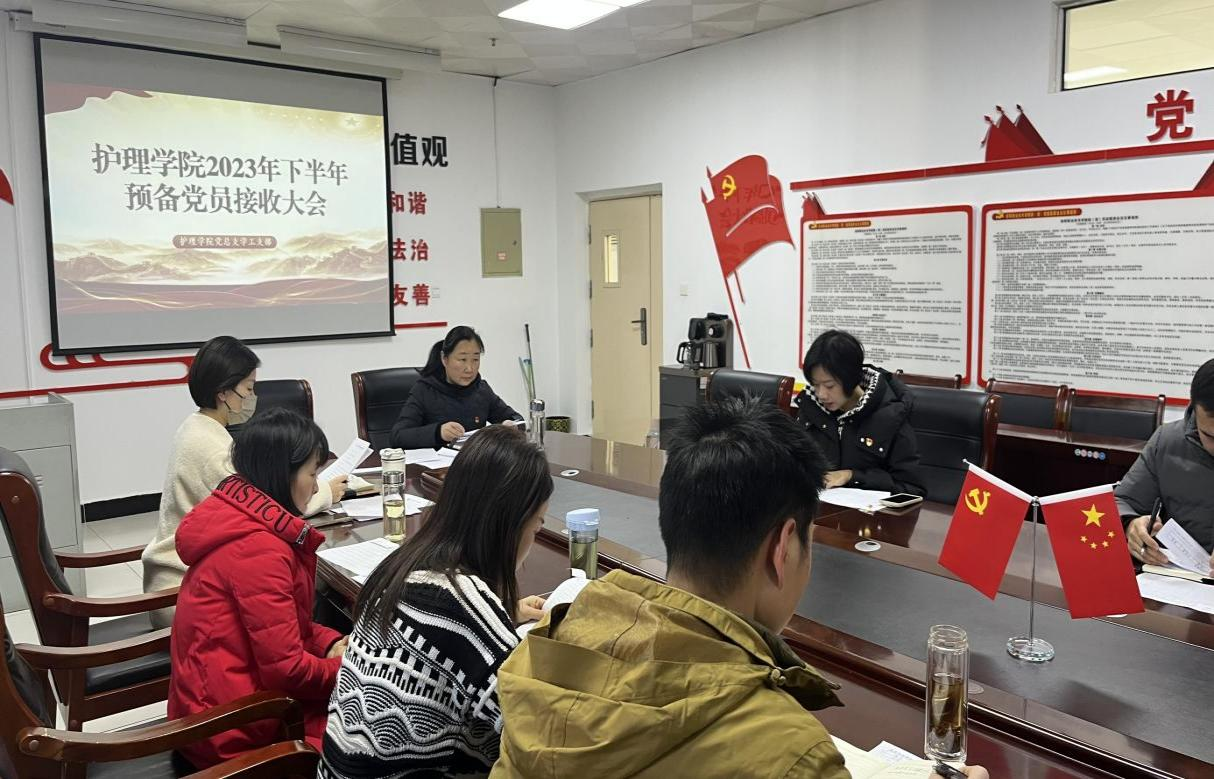 2023年12月15日,太阳成集团tyc33455cc学工党支部在“党员之家”召开了2023年下半年预备党员接收大会。太阳成集团tyc33455cc党总支书记王虹、学工党支部全体党员及入党介绍人参加了本次会议,会议由党总支副书记李鑫汝主持。