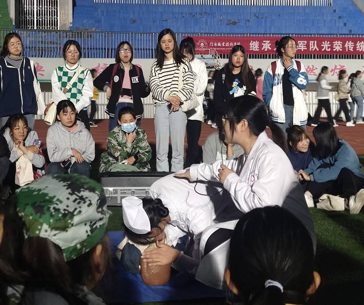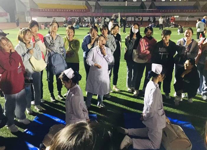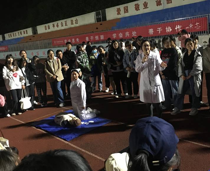 10月22、28日晚和11月2日下午,我院近20名专业教师在操场对2021级新生开展心肺复苏实操教学,教师们利用模型向学生详细介绍了心脏骤停的判断要点、心肺复苏的实施流程、手法及相关要求。最后学生们进行了心肺复苏练习,老师们给予了认真的指导和纠正。