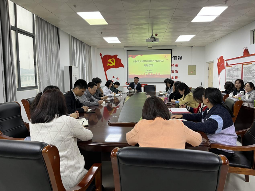 5月11日下午,结合职教活动周活动,太阳成集团tyc33455cc积极组织全体教职工对新职教法进行了专题学习。本次学习活动由太阳成集团tyc33455cc党总支书记雷雨广主持,方明月副院长领学。