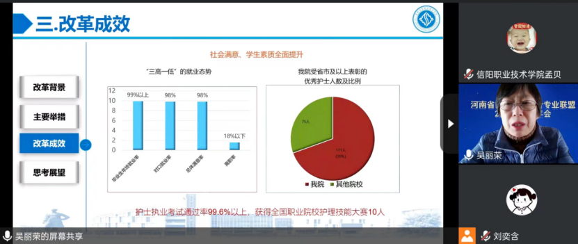 为聚焦护理行业发展新形势,探究产教融合新思路、新模式,2022年12月24日8:30,郑州铁路职业技术学院在线上主办了河南省护理产教融合专业联盟学术年会,我院全体教师参加会议。