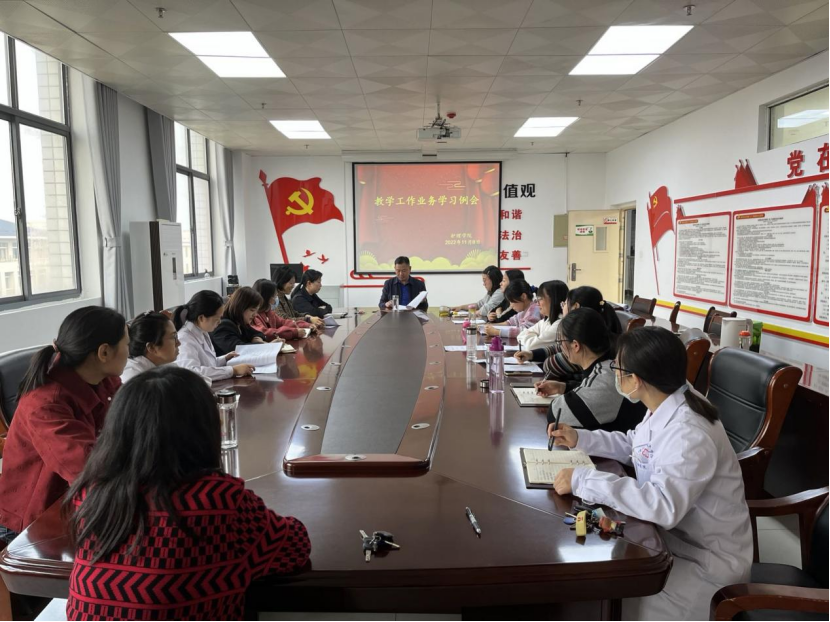 会上,方明月副院长首先汇报了常规教学实验实训课程授课情况和护理教学资源库的建设推进情况,双高工程年度完成情况,新增健康养老服务与管理专业申报情况,并就本学期期末教学工作做出具体安排。