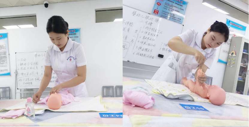 为响应2023年职业教育活动周“技能让生活更美好”的号召,全面提升我院学生的整体素质和专业技术水平,5月16日下午,我院第一届婴幼儿照护技能大赛在太阳成集团tyc33455cc三楼育婴员考评室顺利举行。本次大赛特邀太阳成集团tyc33455cc副院长方明月、专业教师夏影秋、熊杰林等担任评委。