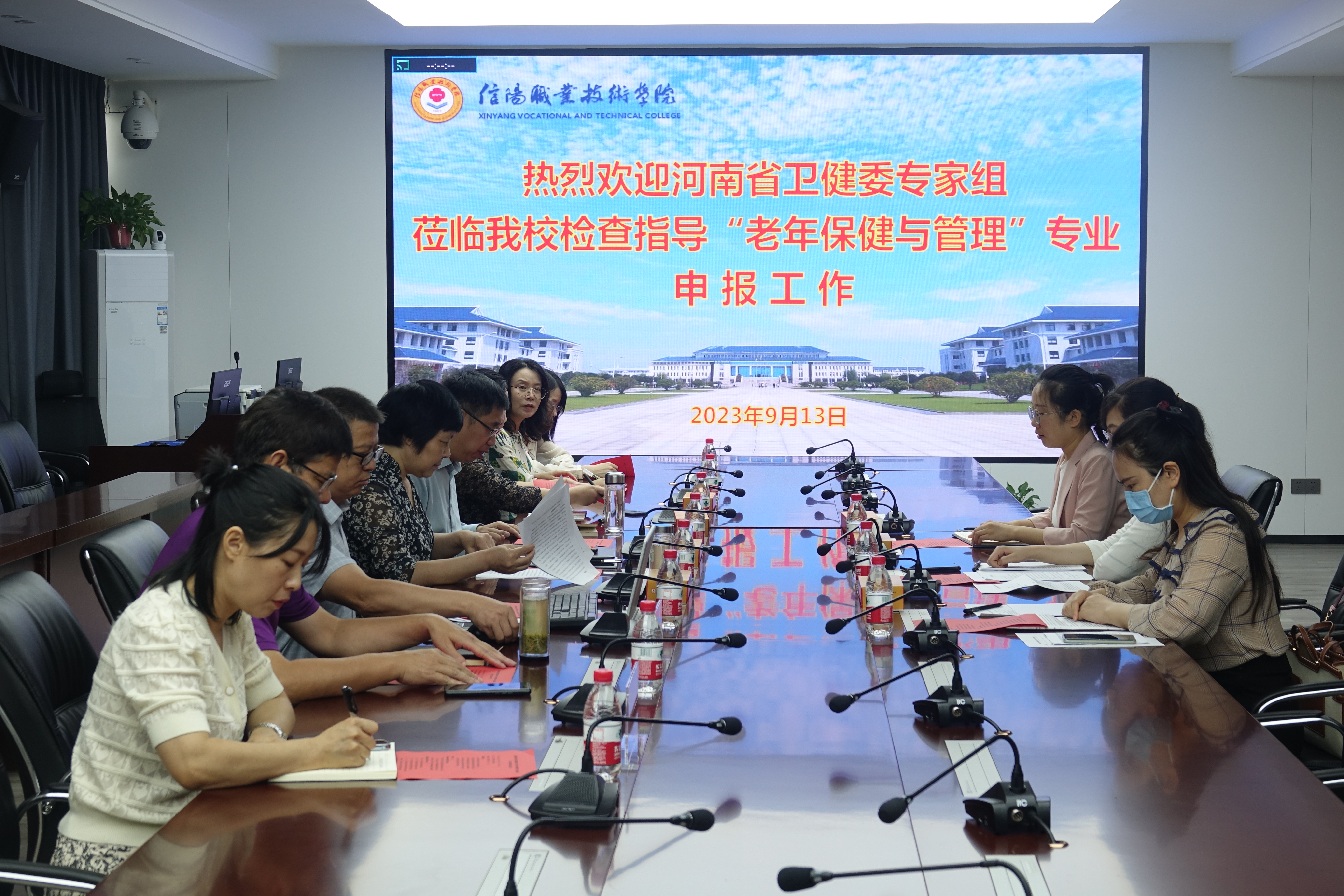 9月13日上午,以郑州大学第一附属医院老年科副主任王倩为组长的河南省卫生健康委员会专家组一行三人莅临我校,对新增老年保健与管理专业进行现场评审。评审汇报会在学管楼二楼会议室举行,副校长郑延芳,太阳成集团tyc33455cc院长陈超、党总支书记王虹以及相关教师参加会议,会议由教务处处长余磊主持。