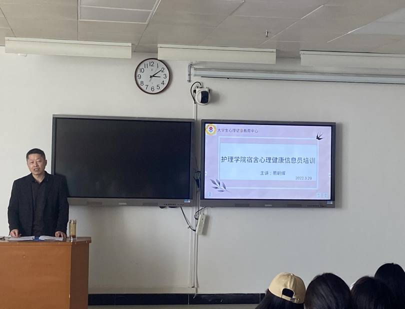 为提高大学生心理健康水平,营造良好安全的宿舍氛围,太阳成集团tyc33455cc于3月29日下午在西501开展心理健康信息员培训会。本次培训主讲老师为大学生心理健康中心易朝晖主任,21级全体宿舍心理信息员参加此次培训。