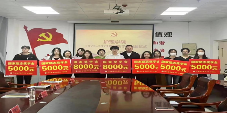 会议在热烈的掌声中落下帷幕,学院领导和老师们也依次为国家励志奖学金、国家奖学金、国家助学金的获得者学生代表颁奖,并拍照留念。