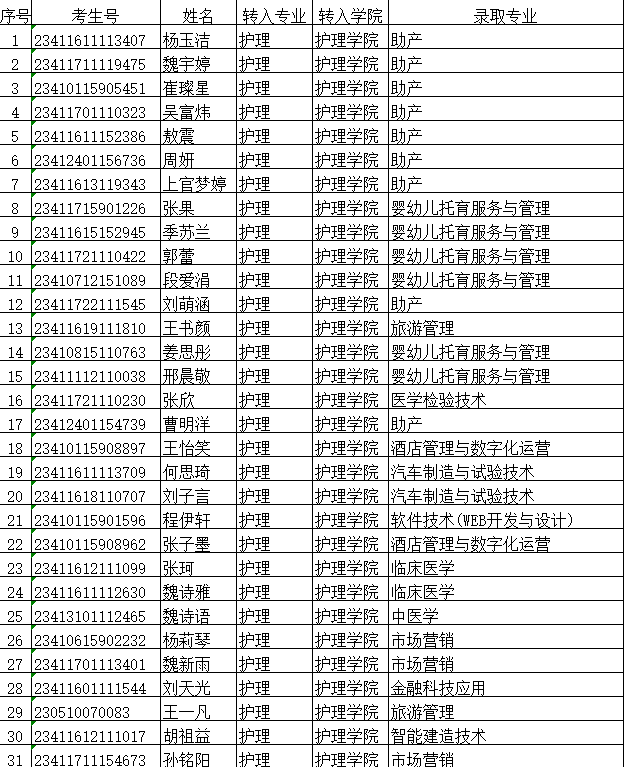 2023年转入太阳成集团tyc33455cc学生名单公示