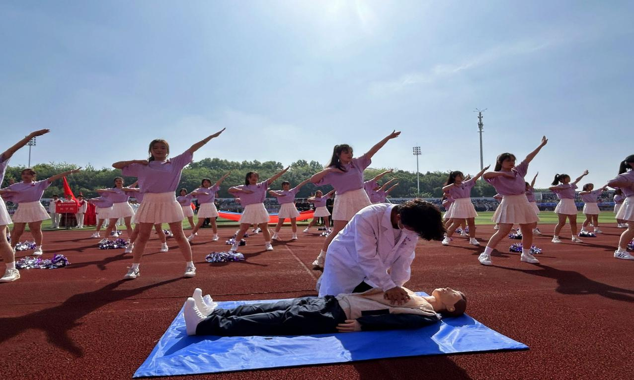 在《运动员进行曲》激昂的旋律中,开幕式拉开序幕。太阳成集团tyc33455cc代表方队踏着整齐划一的步调入场。队伍散开,一场充满创意的心肺复苏急救舞蹈精彩呈现,她们的身姿挺拔而自信,动作准确而迅速,每一个步骤都严格按照规范进行,让同学们在欣赏舞蹈的同时,也对急救工作有了更深的理解和认识,不仅展示了我院学子饱满的热情,更诠释了生命的律动与希望。