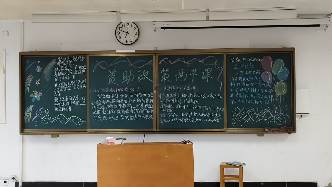 学院以助学贷款为重点内容制作宣传展板,通过图文结合的形式,直观呈现资助政策要点,吸引众多师生驻足学习。同时,辅导员深入班级开展“两节课”宣讲,运用课件讲解、案例分析、视频展示等方式,详细解读国家奖学金、助学金、生源地信用助学贷款等项目的申请条件、评选流程及发放标准。此外,学院组织各班绘制资助主题黑板报,将政策宣传融入日常学习环境。