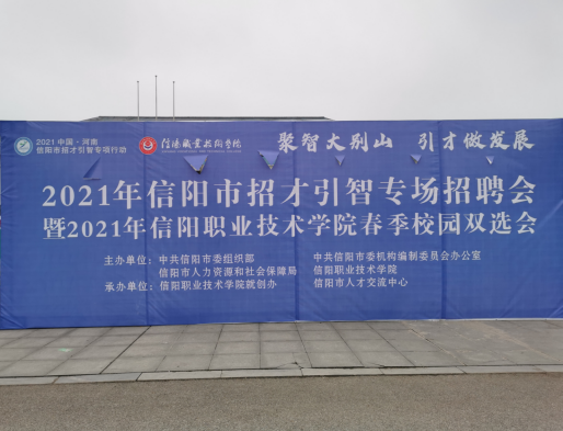 为进一步做好我校2021届毕业生就业工作,坚持“就业第一,以市场为导向促进就业”的指导方针,促进各类人才与市场有效对接,我校于4月24日上午9时在明德广场举办了2021年信阳市招才引智专场招聘会暨2021年太阳成集团tyc33455春季校园双选会,其中固始县中医院、广东省珠海市美业协会和深圳市巨邦科技发展有限公司在我院举行了专场招聘会。