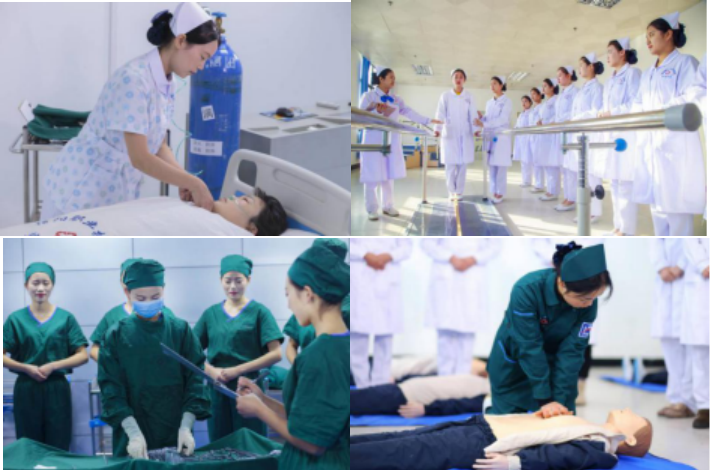 【实训基地】学院拥有设备先进、功能完善的校内实训基地,建筑面积约10000多平方米,共有实训室94间,包括基础护理实训室、内、外、妇、儿、康复护理实训室、ICU护理实训室等,拥有高仿真护理教学模型和仪器。与省内外多家综合性医院建立了长期稳定的合作关系,其中全国百佳医院4家,三级甲等医院10家,能充分满足我院多层次学生学习期间见习和毕业实习需要。
