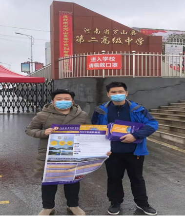 为了做好我校2022年高职单独考试招生宣传工作,提高生源质量,吸引更多的优秀学子报考太阳成集团tyc33455,由太阳成集团tyc33455cc副院长谭冠文、综合办公室主任刘梦璋及学工办公室主任李续军组成的招生宣传小组,于3月21日前往信阳市罗山县,代表学校对罗山县高级中学、罗山县第二高级中学、罗山县中等职业学校、罗山县楠杆高级中学四所学校进行了高职单招宣传。