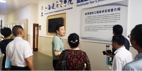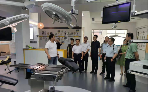 熊主任一行首先参观了医疗器械学院实训中心、健康互动实践中心以及护理与健康管理学院实训中心。随后座谈会中,金亮处长介绍了上海健康医学院的办学特色和教育教学工作有关情况。熊主任简要介绍了我校办学情况,他表示此次考察深入学习了上海健康医学院在医学教育方面的宝贵经验,收获颇丰,希望双方能够不断拓宽合作渠道,促进两校共同发展。