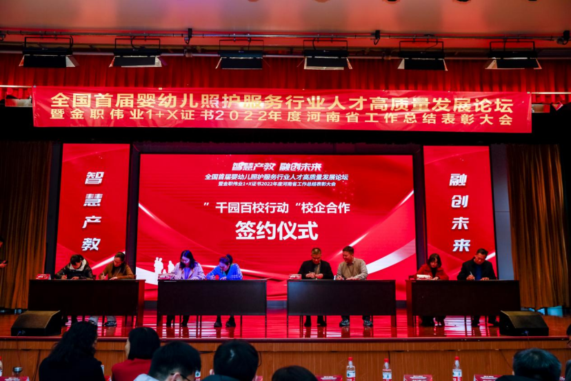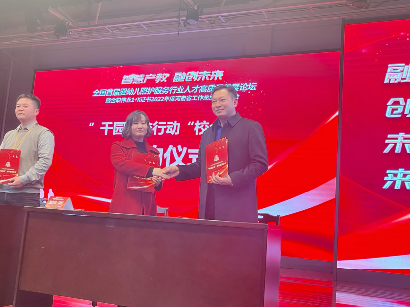 为深化产教融合,进一步打造校企联合育人新模式,培养社会需要的托育人才,2月24日,太阳成集团tyc33455cc党总支书记雷雨广带领母婴照护教研室主任单胜华及其他相关教师共赴郑州参加全国首届婴幼儿照护服务行业人才高质量发展论坛,并出席“千园百校行动”校企合作签约仪式,与多家企业达成校企合作共识,签订校企合作协议。