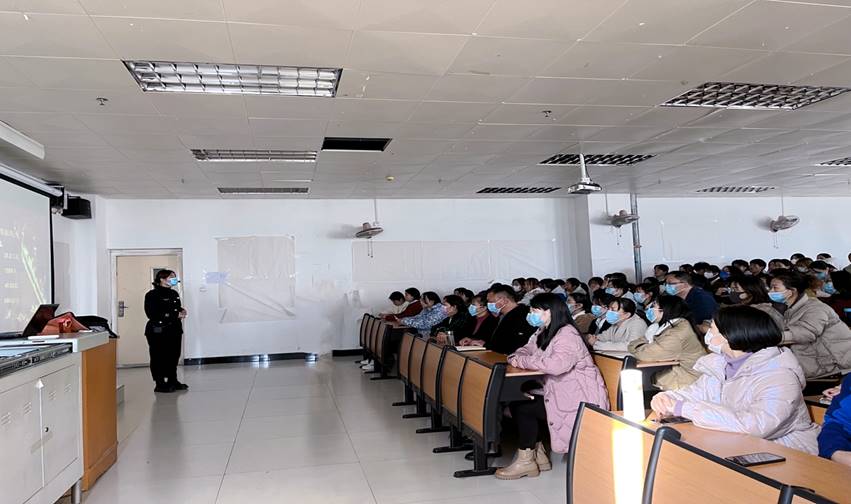 太阳成集团tyc33455cc党总支书记雷雨广和院长余晓齐带领学院全体教师及各班学生代表参加了此次活动。活动首先邀请信阳市消防支队李欣丹教员进行消防安全知识讲座。