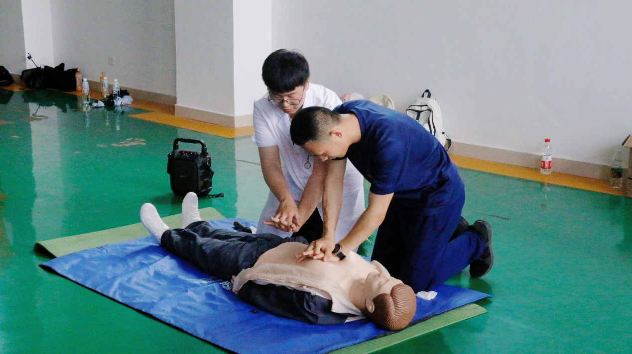 到达活动现场后,同学们立即行动起来,热情地向消防队员们传授心肺复苏、海姆立克急救法热射病急救处理的方法和要点。学习过程中,消防队员们表现出了极高的学习兴趣和热情,他们认真聆听讲解,积极参与实际操作,努力学习掌握急救技能。