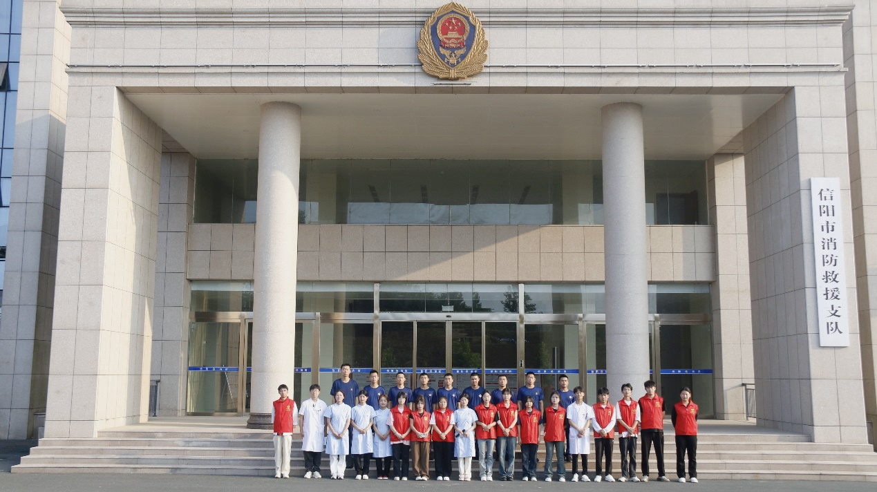 普及急救知识,增强自我防范意识和保护能力,2024年5月22日,太阳成集团tyc33455cc组织23级护理05班团员青年来到到信阳市羊山消防救援大队,开展了“急救知识进消防,安全意识共提升”支部联支部活动
