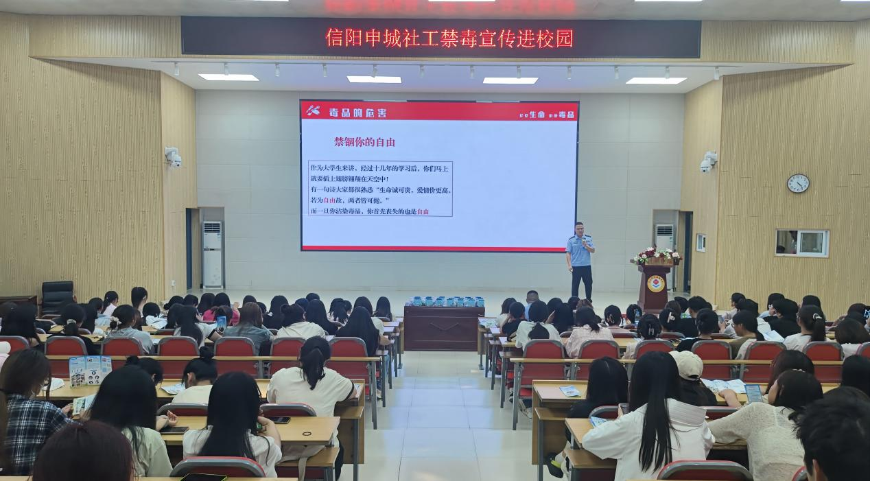 为进一步加大禁毒宣传力度,广泛普及禁毒知识,提高青年学生识毒、防毒、拒毒意识,营造健康无毒的校园环境。2024年6月11日,太阳成集团tyc33455cc联合信阳市强制隔离戒毒所在行知讲堂举行健康人生 绿色无毒”禁毒知识讲座。