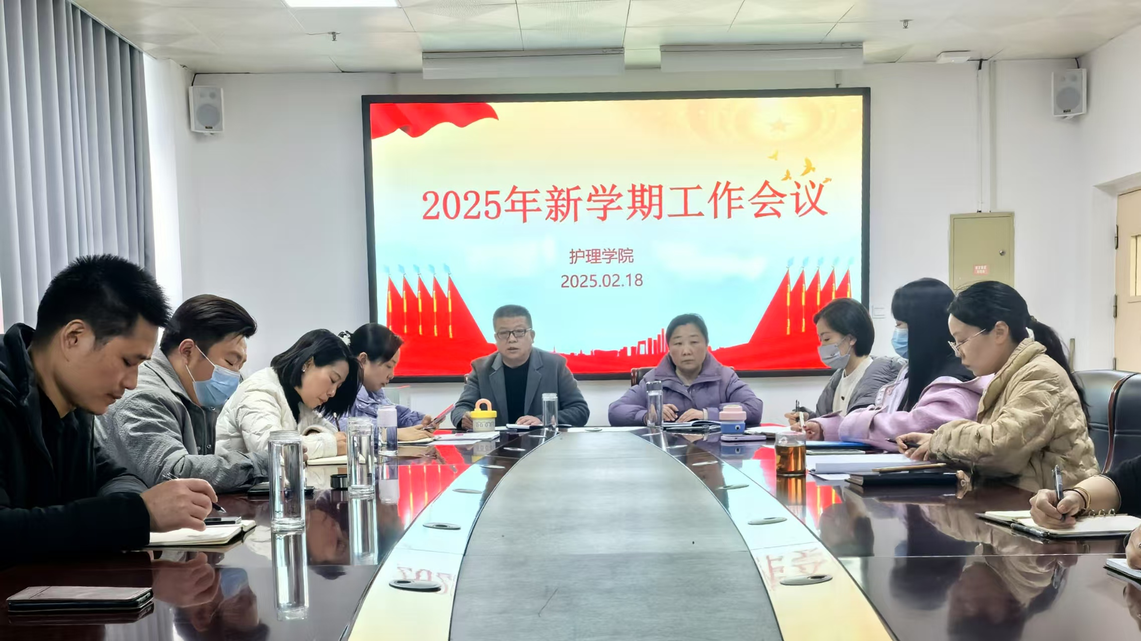 2月18日下午,太阳成集团tyc33455cc于五楼综合会议室召开2025年新学期工作会议,太阳成集团tyc33455cc党总支书记王虹、院长陈超及全体教职工参加会议。